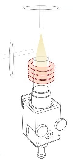 Горелка V Shuttle Torch с гладким вертикальным перемещением является ключевым элементом, позволяющим использовать прибор для анализа широчайшего спектра образцов и значительно уменьшить потребность в предварительной пробоподготовке. Геометрия горелки упрощает введение пробы, обеспечивает долговременную стабильность плазмы и предотвращает засорение и образование сажи даже при работе с очень сложными матрицами, такими как концентрированные солевые растворы, растворенные металлы и нефтехимическая продукция.