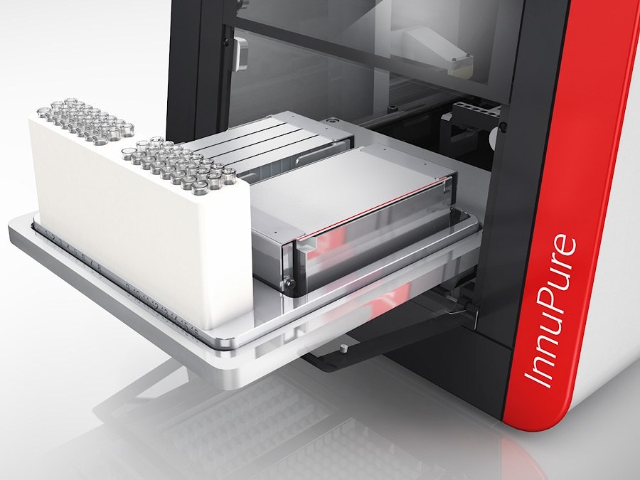 InnuPure® C16 touch имеет интуитивно понятный и простой в работе интерфейс. Кроме того, оптимально используются высококачественные наконечники пипеток, что позволяет минимизировать количество жидкости, оставшейся в них. Встроенный дозирующий блок позволяет операторам устанавливать объем элюирования на значение от 20 до 500 мкл; пипетирование осуществляется автоматически. Концы пипетки и элюирующие трубки являются компонентами экстракционного набора.
