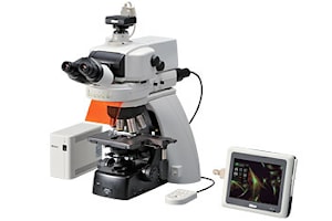 - Большинством функций можно легко управлять при помощи кнопок на передней панели микроскопа Ni-E.