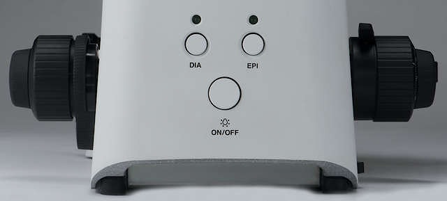 Кнопки управления микроскопом Ts2R расположены интуитивно, что упрощает рабочий процесс. Кнопки включения / выключения и переключения диаскопической / эпи-флуоресценции расположены на передней панели, в то время как кнопки, относящиеся к управлению диаскопической или эпи-флуоресценцией, находятся с левой и правой сторон корпуса микроскопа соответственно.